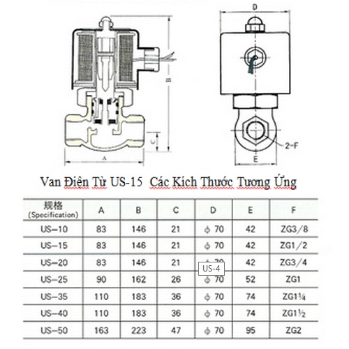 Thông Số Kỹ Thuật Các Cỡ Van US: